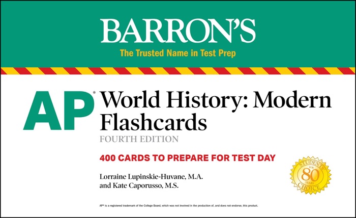 Barron’s AP World History: Modern Flashcards includes 400 up-to-date content review cards and practice questions.